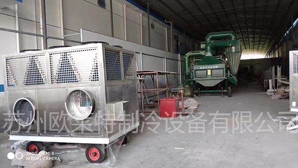 谷物冷卻機是實現(xiàn)綠色低溫儲糧的關鍵設備,將空氣經(jīng)過冷卻和濕度調節(jié) ,向倉庫內吹入適合所存放谷物特性的一定溫度和濕度的空氣,滿足對整倉糧堆進行降溫冷卻作業(yè)要求