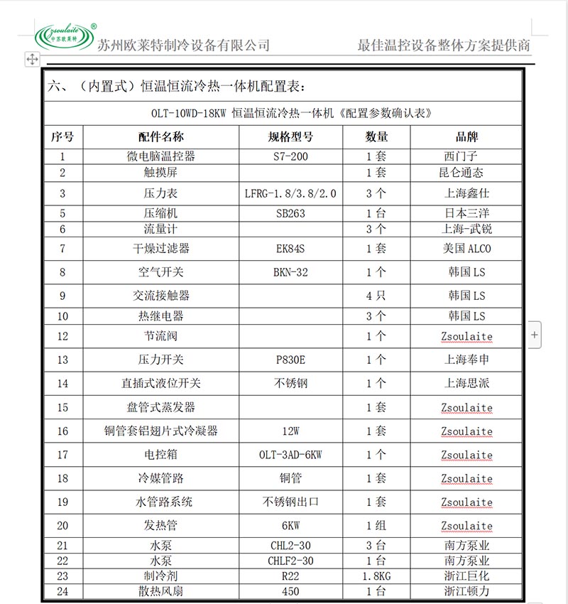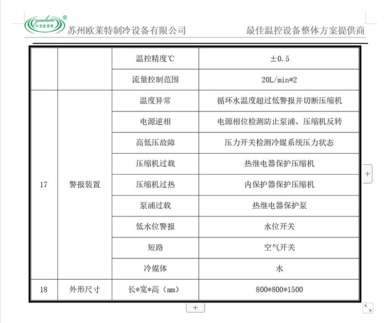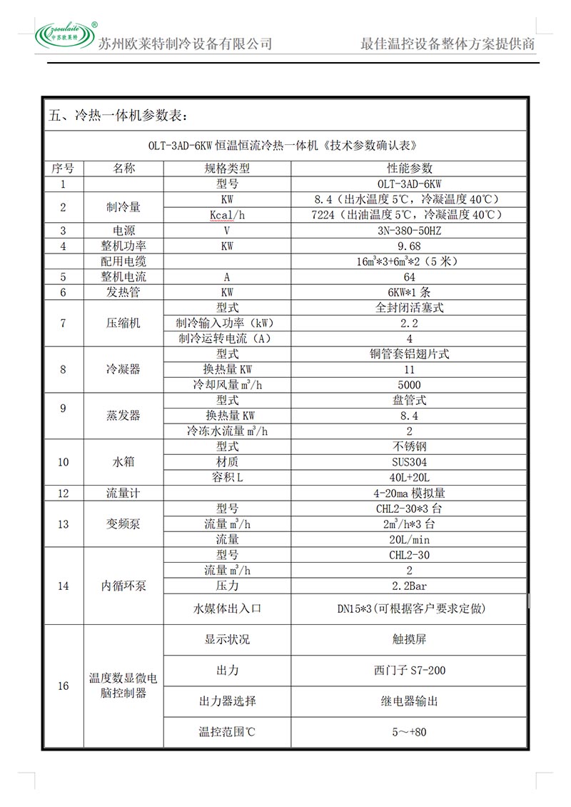 規(guī)格型號:OLT-10AC-12KW 制冷量:28KW 加熱量:12KW 壓縮機功率:7.5KW×1臺 水泵功率:2.2KW 溫控范圍:-80℃-300℃ 流量:5L/min-100L/min