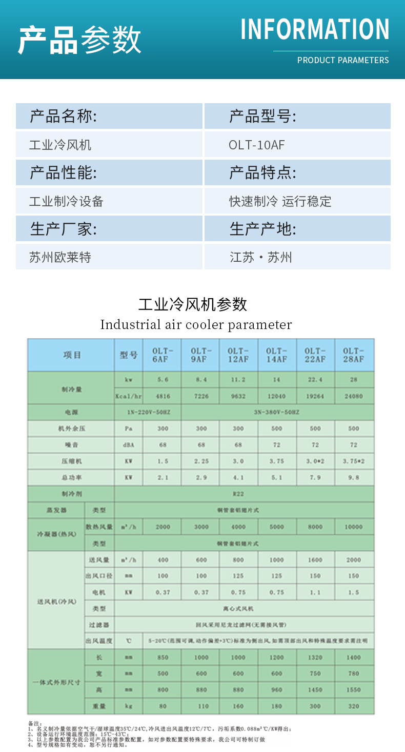 3、需要的冷卻溫度,歐萊特冷風(fēng)機(jī)的溫度控制在-35℃~20℃,如果高于20℃,最好用空調(diào)制冷,因?yàn)榭照{(diào)的造價(jià)要比工業(yè)冷風(fēng)機(jī)的造價(jià)要便宜得多;